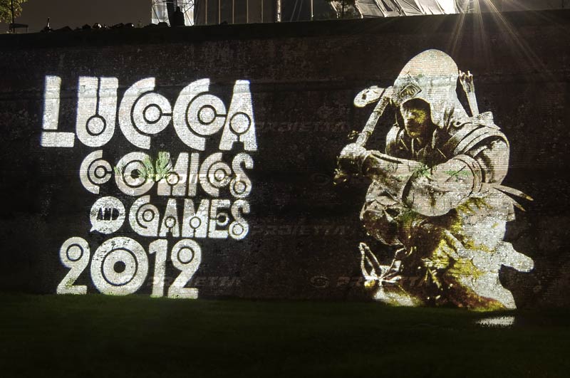 Ubisoft a choisi PROIETTA pour faire une série de projections de logos et personnages de Assassin Creed, fameuse vidéo jeu. Les projections ont été faites à Lucca Comics & Games 2012 sur les murs de la ville et des bâtiments du centre historique. Pour la projection ont été utilisés projecteurs Monster 1200 - 2000 et gobos personnalisés à deux ou trois couleurs.